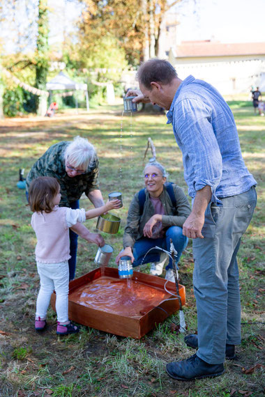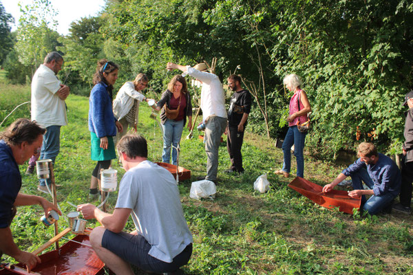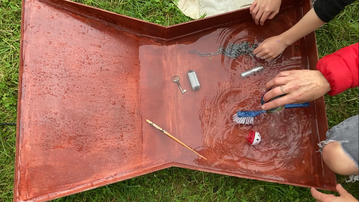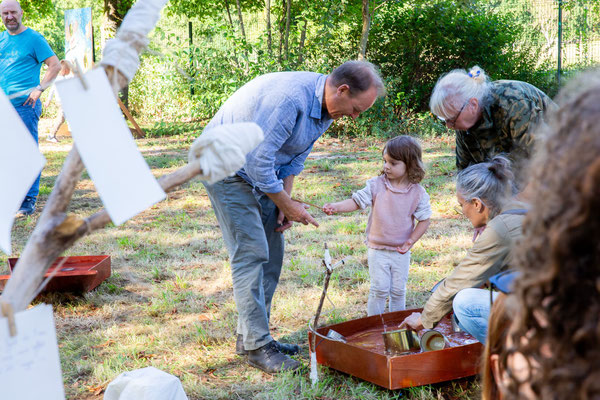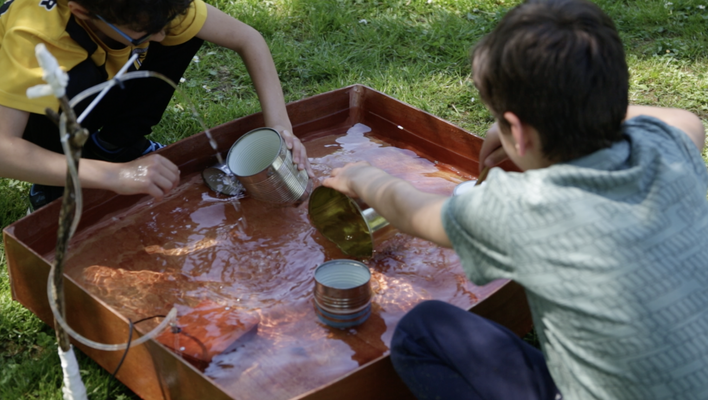 Parcours poétique, plongée dans des univers sonores aquatiques, le dispositif est joué par les participant.e.s.